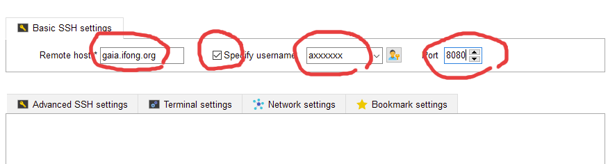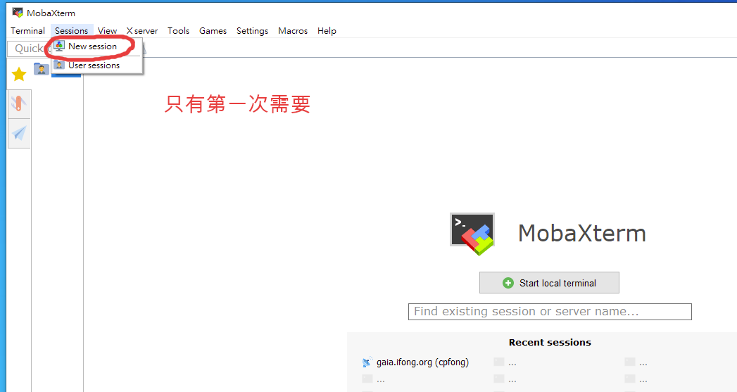 連線軟體: mobaexterm 下載軟體: 官網 如何下載: get mobaxterm now -- free version -- install ver 主機: gaia.ifong.org 埠號: 8080 tcp 帳號: a011127001 密碼: iLoveAFATS 如何使用 step by step: new session -- ssh -- host/acc/port -- password --
