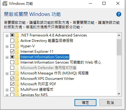 windows IIS -- 控制台的程式集 -- 打開 windows 功能 -- IIS -- simple index.html
