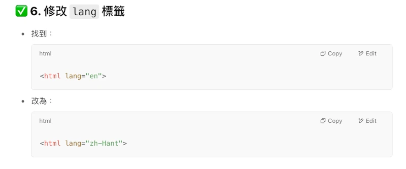 adv github -- 第一步:Fork 模板 -- 第二步:下載或在線編輯 -- 第三步:修改 index.html -- 修改lang標籤