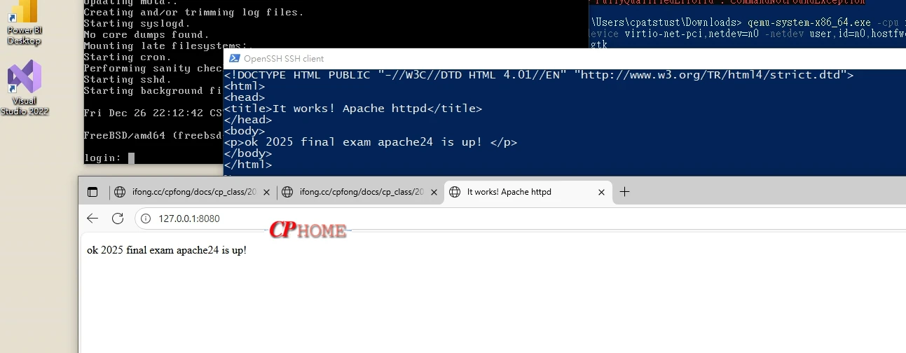 題一: 由網路新取回img後改名freebsd.img且qemu跑起vm final-exam-ans-1.jpg